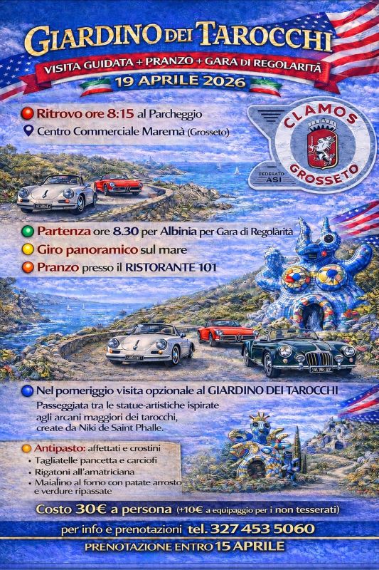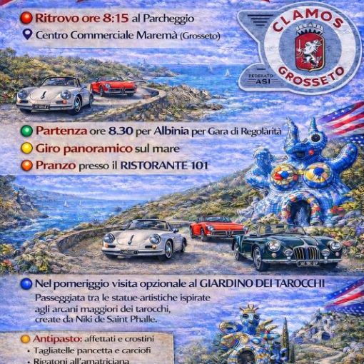 Pubblicato 06/04/2026 Giardino dei Tarocchi Programma evento 19 Aprile 2026 Parcheggio Centro Commerciale Maremà – h 8:15 Grosseto – Albinia – Garavicchio Pescia Fiorentina (Capalbio) Gara di […]