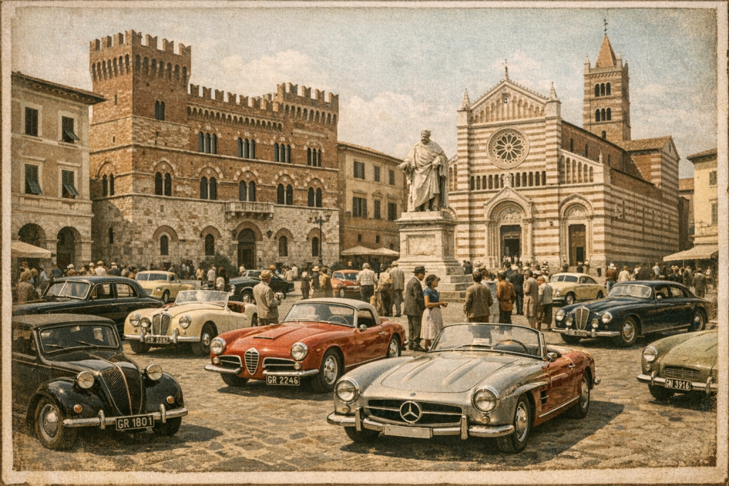 Nel Grossetano iniziarono così ad essere ristrutturate alcune Fiat Topolino A e B, Balilla, Fiat 1500c musone , alcune Alfa 1900 , moto Guzzi e Gilera diffondendosi piano piano la “ malattia” del restauro e del possesso del mezzo storico esibito con piccole mostre statiche nelle feste paesane ed a qualche raduno denominato” fuori porta”.